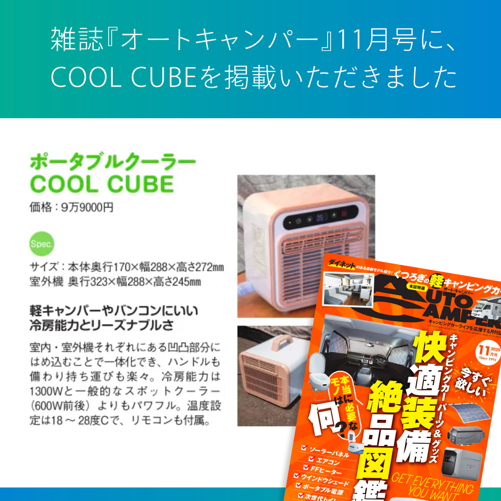誌面では、一般的なスポットクーラーを上回る冷房性能や、持ち運びやすい設計なども取り上げられました。
